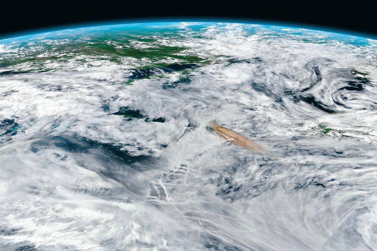 Извержение вулкана Райкоке глазами метеоспутника Suomi NPP с высоты 824 км над поверхностью планеты. 22 июня после столетней спячки проснулся вулкан, расположенный на острове Райкоке из гряды Курильских островов. Мощное извержение продлилось 12 часов и уничтожило все живое на острове, а выброшенный вулканом пепел поднялся на высоту до 17 км.