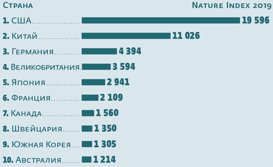Журнал Nature опубликовал топ-10 стран, внесших в прошлом году наибольший вклад в естественные науки. Список составлен на основе индекса, отражающего вклад ученых страны в публикации в 82 ведущих естественнонаучных журналах.