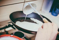Блины появились очень давно: еще в V веке до нашей эры египтяне пекли их предка — кислые тонкие лепешки. Но лишь на прошлой неделе физики придумали, как приготовить эталонный блинчик: круглой формы, постоянной толщины и равномерно прожаренный. Для этого они рассчитали движение теста по поверхности сковороды: в сложном уравнении учитывались диаметр сковородки и ее температура; вязкость, плотность, теплопроводность теста и другие параметры. Затем исследователи опробовали различные методы выпекания блинов и провели дополнительные расчеты. И не зря — ученые смогли увеличить однородность блинов на 180%. Вот секрет идеального блина: налить тесто в центр, наклонить сковороду на 10 градусов; когда тесто, стекая, достигнет бортика — покрутить сковороду, чтобы оно сделало полный круг, а затем уменьшить наклон до нуля и ждать готовности блинчика. (3)