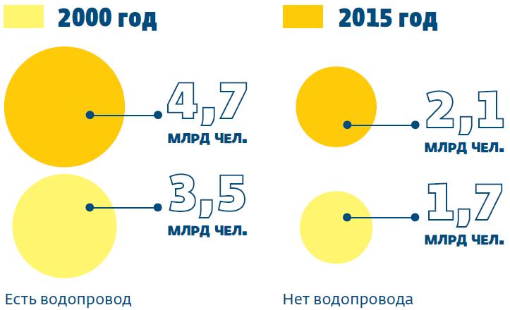 Количество людей, у которых есть водопровод (миллиарды человек)