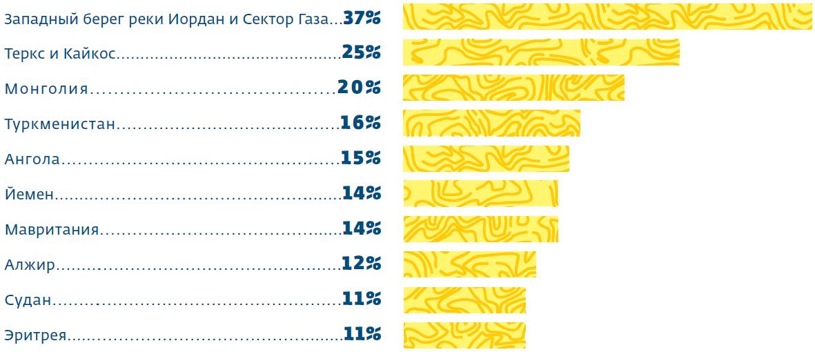 Жители стран, которые больше других зависят от поставок воды (процент населения)