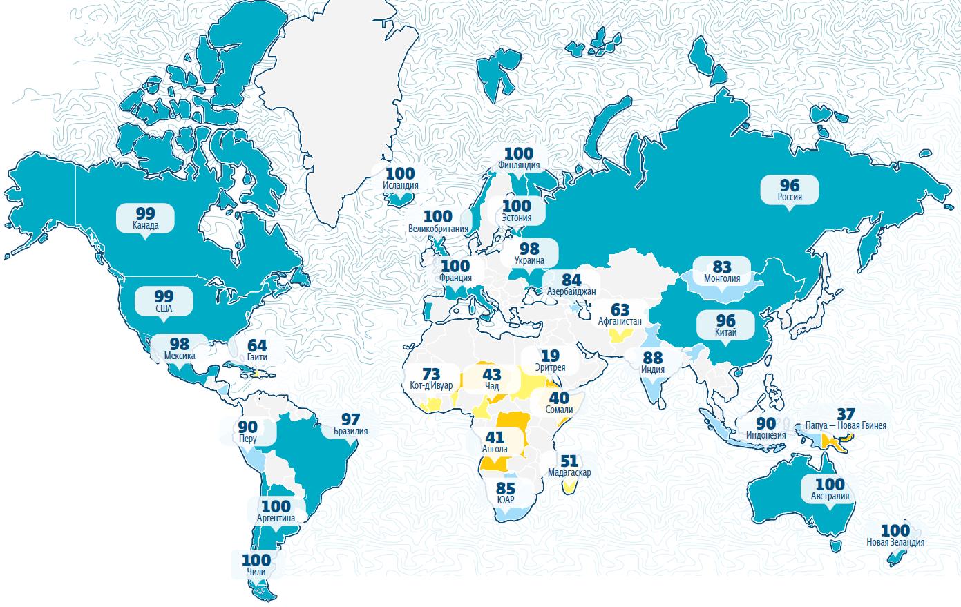 Насколько жителям Земли доступна чистая вода (процент населения)