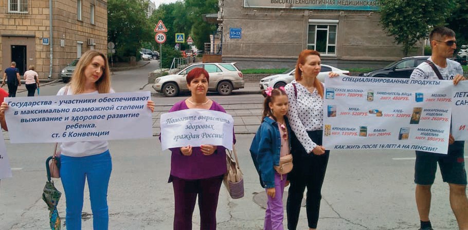 Мы вышли 28 июня, во Всемирный день фенилкетонурии, в нескольких городах. Требовали инвалидности до 18 лет, мест в летнем лагере, закупки специализированных продуктов, организации питания в больницах. Когда моему ребенку сделали операцию, мы лежали в больнице три дня и почти всю еду нам готовил папа, а потом отвозил. То есть если ребенок болеет, мы не можем работать! Если ребенок здоров, тоже есть препятствия для регулярной работы. Еще год назад в обеденное время я каждый день возила ребенку в детский сад компот со смесью. Меня вынуждали поить его самостоятельно, потому что работник детского сада не имеет права давать медикаменты. Я с ними боролась долго и упорно.