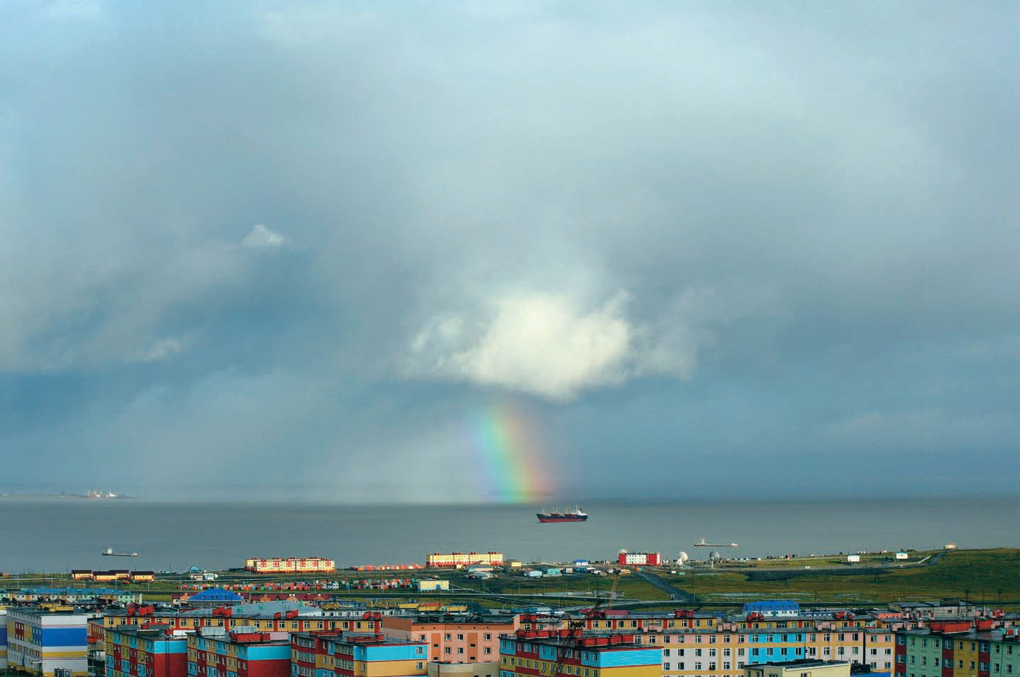 Над Анадырем встает утро. Дома были покрашены в разные цвета во время губернаторства Романа Абрамовича, чтобы жители города не впали в депрессию из-за зимнего бесцветья и долгой пурги. В Анадыре нет деревьев. Его площадь — двадцать квадратных метров; от начала и до конца можно пройти за двадцать минут. В городе живет пятнадцать тысяч человек, и сейчас они не спеша идут на работу. Открываются магазины. В супермаркете, стоящем неподалеку от администрации города, полкилограмма красной икры можно купить за полторы тысячи рублей, бананы — за семьсот рублей, огурцы — за шестьсот восемьдесят пять. Зимой, когда навигация закрыта, они стоят еще дороже, а цена килограмма белокочанной капусты доходит до восьмисот рублей.