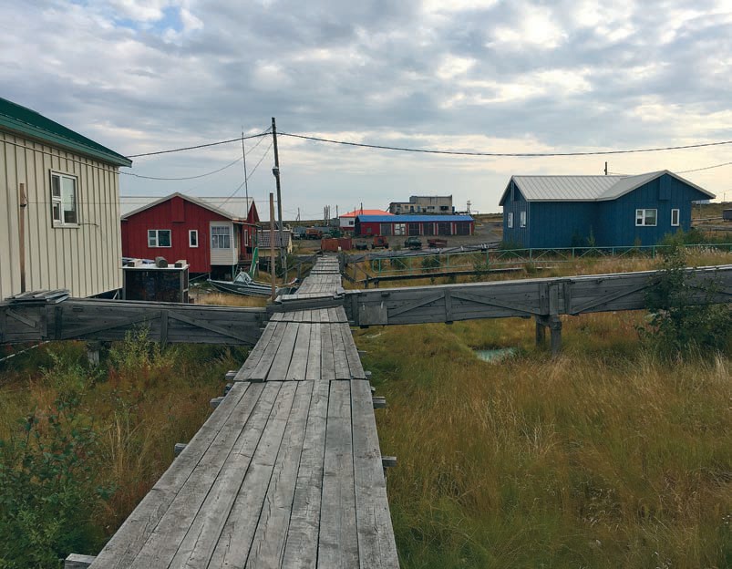 Женщина отворачивается от воды и уходит вверх по крутой тропинке к деревянному балку. Галечный берег заканчивается бугристой возвышенностью, поросшей пучками жесткой, начавшей желтеть травы. На возвышенности в ряд стоят балки, слепленные из чего попало — листов ржавого железа, фанеры, пластика. За ними начинается Анадырь, столица Чукотки.