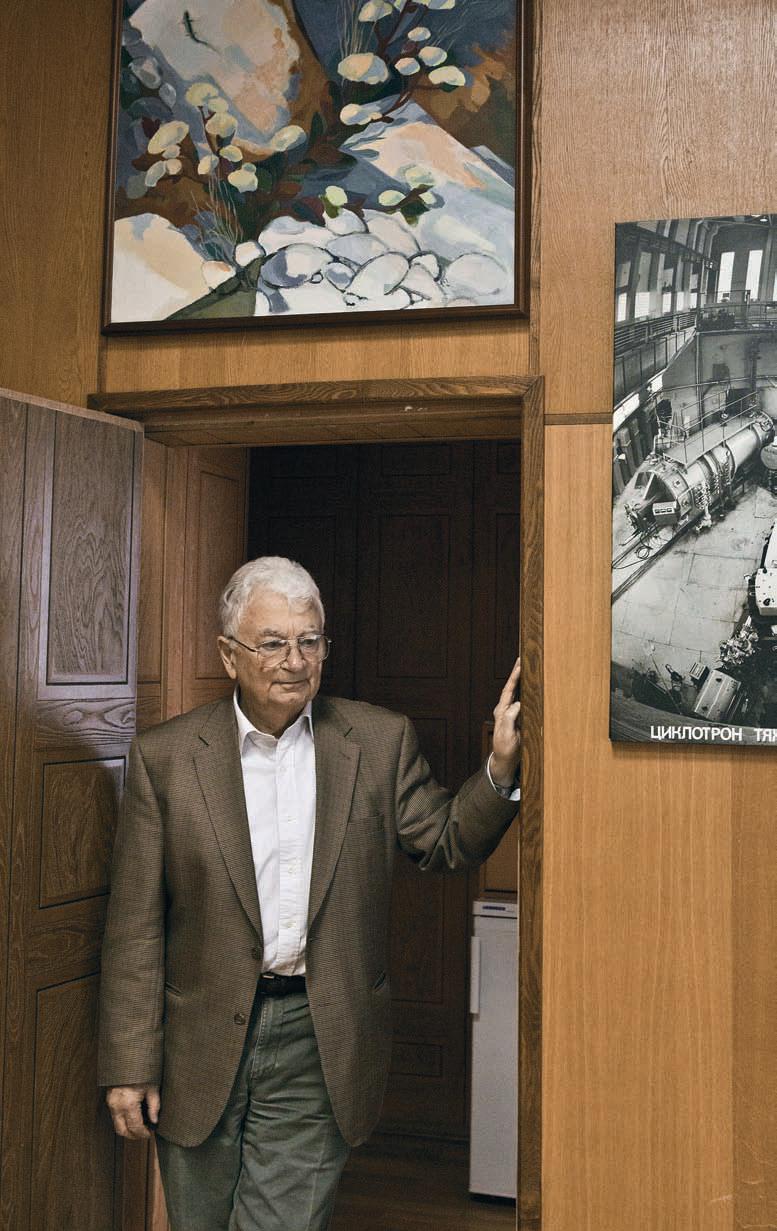 Мы сидим в кабинете ученого за большим длинным столом для рабочих заседаний, академик Флеров с портрета иронично прислушивается к нашей беседе, сдвинув очки на лоб. Об академике Флерове до сих пор ходит множество легенд. Это он написал письмо с фронта Сталину, предположив, что американцы засекретили ядерный проект и создают оружие. Копия письма лежит под стеклом в соседнем кабинете-музее. Флеров был прекрасным пловцом, отлично держался в седле, ходил в экспедиции. Люди посвященные рассказывают, что у физиков даже есть шутка про единицу активности — один «флер».