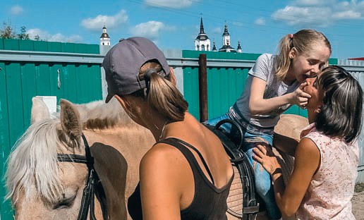 Председатель общественной организации «Равные возможности» Сергей Маркштедер с женой Екатериной создали конный клуб «Конек-горбунок» три года назад. Здесь проводят занятия по иппотерапии для детей от трех лет. Сергей надеялся, что лошади помогут ему справиться с недугом (после травмы он передвигается в инвалидной коляске). Сейчас в клубе ежегодно занимаются от 20 до 40 детей, но сам создатель так и не смог ездить на лошади.