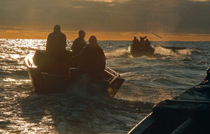В селе жил один старик, который самостоятельно стал готовить снаряжение для охоты. И в первый выход в море сопровождал охотников на вельботе. Китов в то время было так много, что лодке с охотниками все время приходилось лавировать между ними, пока старик не указал на кита, которого они в тот день и добыли. С тех пор они снова стали выходить в море,полагаясь только на свои силы и на удачу.