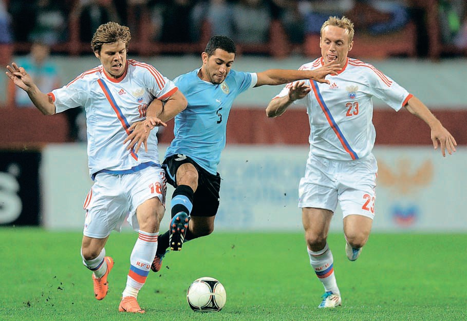 На футбольном поле уругвайцев часто называют «небесно-голубыми» — по расцветке формы. И в игре они не такие дружелюбные. Единственный матч россиян и уругвайцев состоялся в 2012 году на бывшем стадионе «Локомотив» в Москве и завершился ничьей (1:1). Голы Кержакова и Суареса разделили какие-то две минуты.