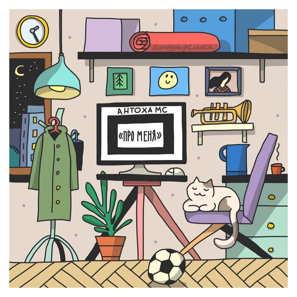 В ироничных интермедиях, начитанных учительским женским голосом, говорится: «Вы слушаете музыкальный альбом Антохи MC под названием “Про меня“. “Про меня” в кавычках — что-то из озвученного является правдой, что-то есть художественная сторона». Тот же голос сообщает, что жизненные задачи Антохи MC — это «ведение домашнего хозяйства, развитие семейного счастья, пропитания, заработок денежных средств» и что сегодня он проживает в съемной квартире на метро «Динамо».