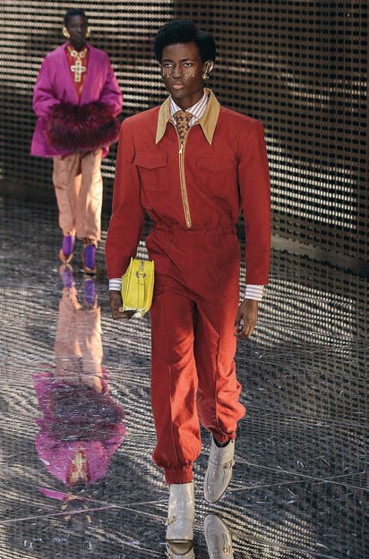 Например, на показе осенней коллекции 2019 года дом Gucci выпустил на подиум мужчин в юбках и женщин в брючных костюмах, подходящих и мужчинам. Очки, маски, прически моделей усиливали этот странный эффект, так что зрители часто и определить не могли, женщина перед ними или мужчина.