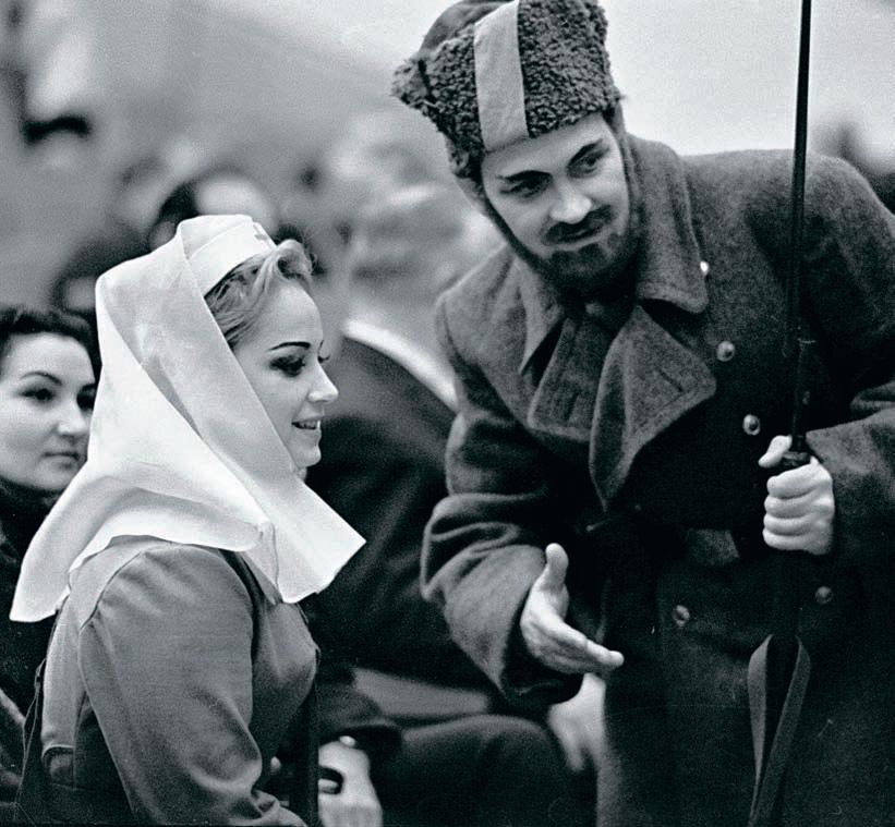 Контекст Знаменитое «Товарищи! Рабоче-крестьянская революция, о необходимости которой все время говорили большевики, совершилась!» прозвучало как раз в «Ленине в Октябре», это последняя реплика вождя. Первый звуковой фильм советской киноленинианы вышел в 1937 году, когда репрессивная машина государства набрала самые мощные обороты. Конкурс на создание фильма к 20-летию революции курировал лично Сталин. Снимать поручили молодому режиссеру Михаилу Ромму, а главную роль сыграл актер Борис Щукин, на долгие годы заложив традицию исполнения роли, и впоследствии актеры играли скорее Щукина, нежели Ленина. Именно благодаря этому артисту появился хитрый говорок, а также нарочитая картавость (в сохранившихся аудиозаписях Ленина слышно, что букву «р» он выговаривает, правда, почему-то не всегда). Фильм был снят всего за три месяца, его премьера состоялась 7 ноября в Большом театре, днем ранее прошел закрытый показ для Сталина, одобрившего картину. Судьба «Ленина в Октябре» оказалась тесно связанной с жизнью страны: в 1956 году, после официального осуждения культа личности Сталина, многие сцены с ним убрали из картины. А в 1963 году Сталин был удален из фильма уже полностью.