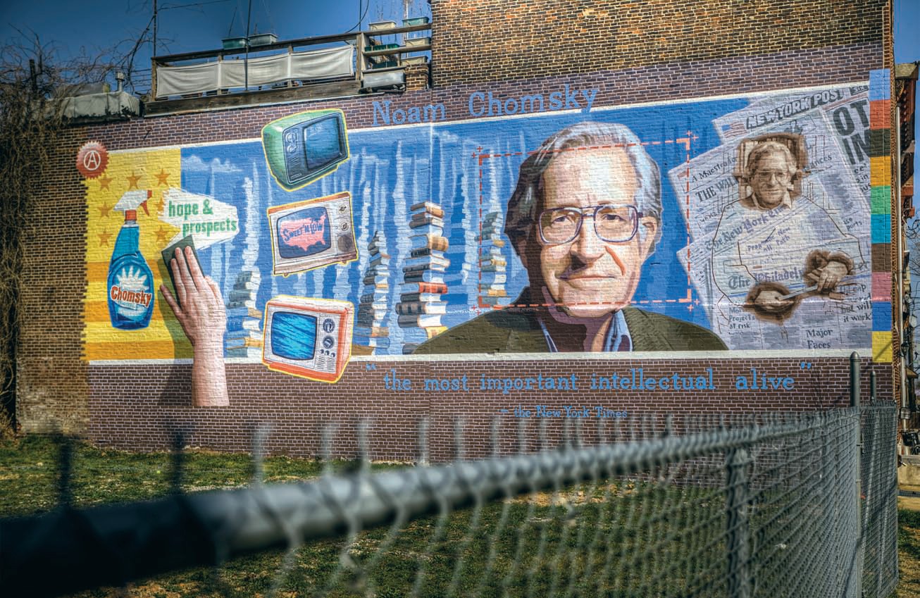 «Существует несколько Хомских — один занимается политикой, другой философией, третий — лингвистикой», — так о себе шутит сам профессор, которому перевалило за 90. Ученый, совершивший революцию в лингвистике, сегодня даже больше известен радикально-левыми политическими взглядами, критикой политики правительства и системы образования США. Активную политическую карьеру он, как и преподавание, начал еще в 1960-е с выступлений и публикаций, направленных против войны во Вьетнаме. С тех времен ученый не устает обрушиваться на американское правительство с уничтожающей критикой, называя США «основным источником международного терроризма», и объясняет массам, как транснациональные корпорации с помощью американской военной машины, неолиберальной экономической политики и контроля над СМИ навязывают свою власть миру. Вдобавок Хомский, по происхождению украинский еврей, является ярым противником и критиком существования Израиля как государства.