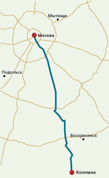 Расстояние от Москвы до Коломны — 100 км