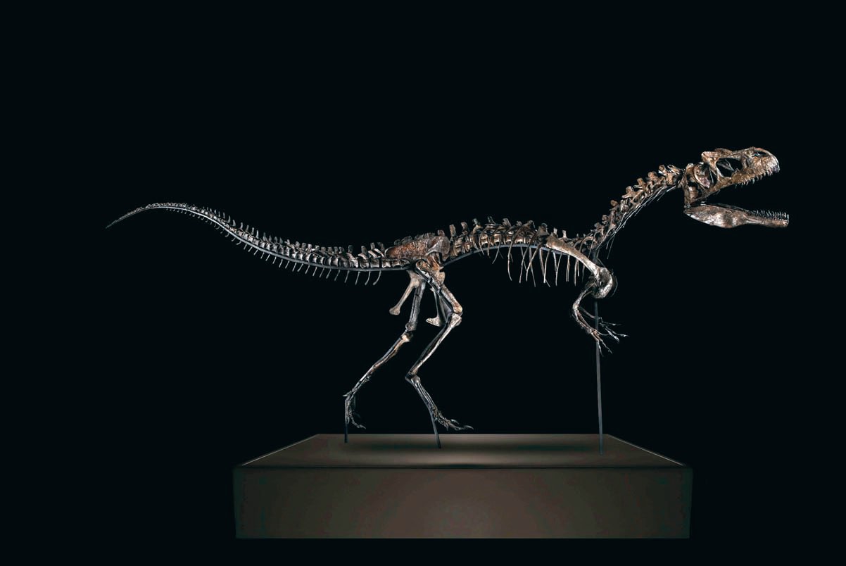 Скелет аллозавра — одного из самых свирепых хищников юрского периода, собранный американскими палеонтологами. Этот скелет, один из самых полных из всех найденных, будет выставлен на аукцион Artcurial в Париже 21 ноября, вместе со скелетом травоядного камптозавра. Длина хищника — почти 5м, а выручить за него собираются 6 00–800 тысяч евро.