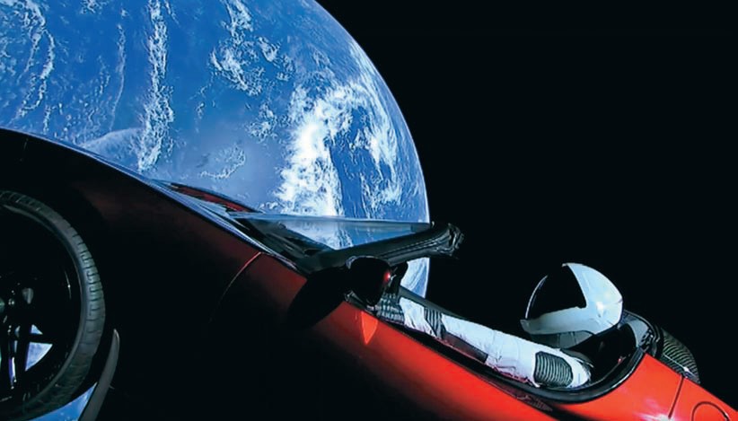 Компания Tesla то ли вот-вот разорится, то ли окончательно восторжествует. А пока мы следим за ее взлетами и падениями, красный Tesla Roadster летит куда-то в сторону Марса. За рулем — манекен по имени Starman, твердо следующий девизу на приборной панели электромобиля: Don’t Panic. В наушниках его скафандра от SpaceX уже по сотне тысяч раз прозвучали песни Дэвида Боуи. А когда аккумулятор сядет, останутся захваченные с собой романы Айзека Азимова и «Автостопом по галактике» Дугласа Адамса — не самые бесполезные книги в космическом путешествии.