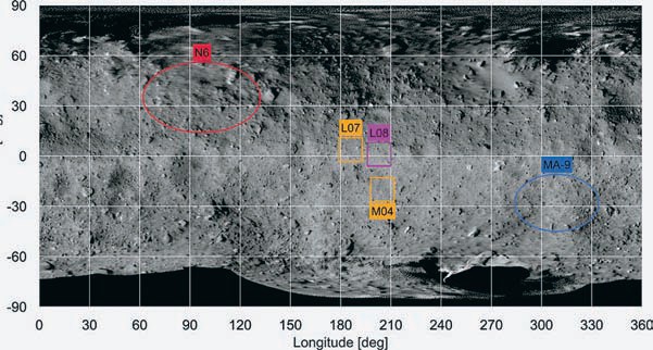 Участки на поверхности астероида Рюгу, которые были выбраны для посадки зондов