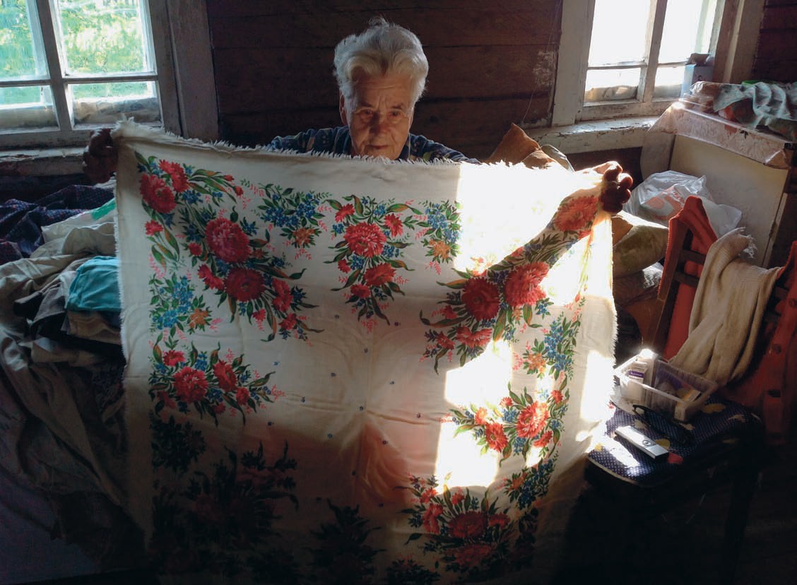 Баба все помнит. А с чего б ей ня помнить? И видит она посейчас, как немцы сюды заходили, а местные и Баба с семьей в окопах прятались с нашими солдатами. И атака была — рукопашная. И солдату одному живот штыком проткнули. Он татарином был, чи ня татарином, одним словом, не русский, но наш боец. У него кишки вылезли, завалился он и выход из окопа закрыл. Наши начали отступать. А Баба с маткой из закрытого окопа вылезть не могли. Тогда немцы к окопам зашли, выгнали всех, к сараю пригнали и сказали: «Русь, ложись!» Маленькая Баба заплакала. Все лягли. А немцы вокруг с автоматами бегають. И Баба говорит: «Мамка, мне страшно». «А ты не гляди на них, дочушка. Ты в землю гляди». Время шло к обеду, а вечером всех подняли, построили в колонны, мужиков отдельно. И погнали мужиков в лагеря, и папку с ними. А женщин с дятьми — в Федурново. И папки все нет. А матка говорит: «Ну что ж, нет, значит, нет». А к обеду папка пришел и говорит: «Нас заставили немцев закапывать». Потом всех согнали смотреть, как вешають наших пленных солдат. Пока их до этой вешалки довели, побили немало. Они молчали. На табуретку их поставили, петлю на шею накинули, табуретку из-под ног — раз, и висели они два дня. А Баба в землю не смотрела, она все видела.