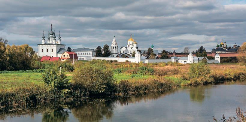 Суздаль начинается с Кремля. Самый красивый архитектурный ансамбль города стоит на возвышенности. От башен и стен веет стариной, и недаром, строительство Кремля началось в 10 веке. На территории современной России мало найдется мест сравнимых по древности застройки. В Кремле радуют глаз изяществом постройки Рождественский собор, с необычайного синего цвета фресками, Никольская церковь, Колокольня, Архиерейские палаты. На территории находится несколько музеев и сама она очень хорошо обустроена и украшена.