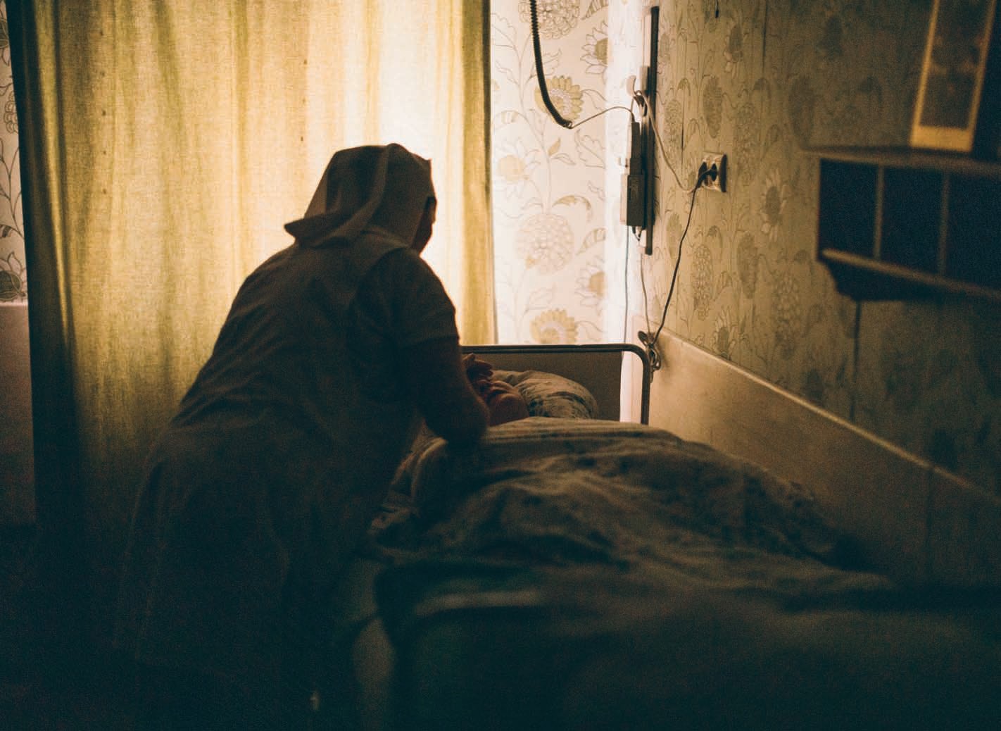 Сестра Светлана выходит из палаты, остановившись на секунду, чтобы погладить лицо молодой женщины, спящей с открытым ртом. Женщина не просыпается, не открывает глаза, но лба ее словно бы касаются мрачные тени.