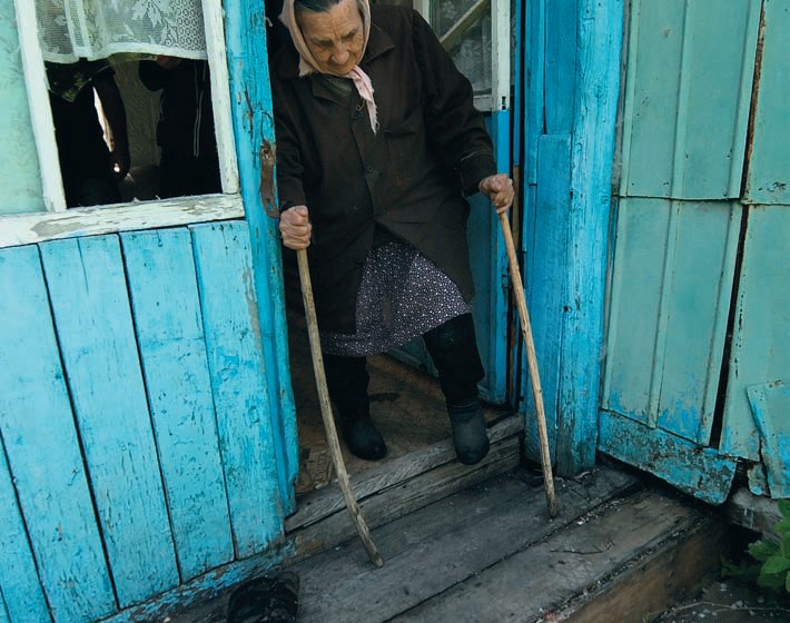 Но без бабы Тони Ольшанка, ее народ — неполные. Она незримо есть в проекте, и к ней справедливо, кажется, применить выражение «значимое отсутствие». Вот она сидит с прямой спиной на завалинке своего дома, который построила вместе с мужем своими руками десятки лет назад.
