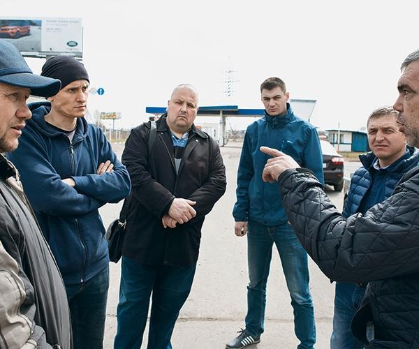Раз было дело на большой парковке, где грузились машины с разных областей. Начал Алексей Борисов водителей обходить, разъяснять, почему надо против «Платона» выступать, какие требования выдвигать, чем занимается ОПР. Подошел и к двоим здоровым мужикам, приехавшим на двух «вольво». Так, мол, и так, говорит, стачку готовим. А в ответ брань: «О, смотрите, хохлов к нам заслали! Или вы либералы проснувшиеся? Что, как на Украине хотите — раскачиваете?!»