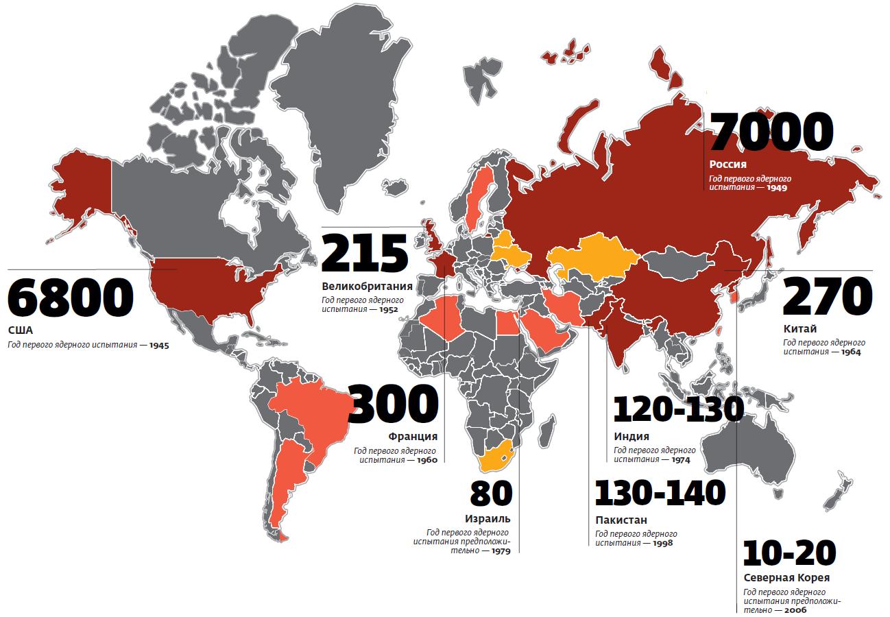 14 935единиц ядерного вооружения насчитывается в мире в 2017 году, по официальным данным. Из них на боевом дежурстве — 9345