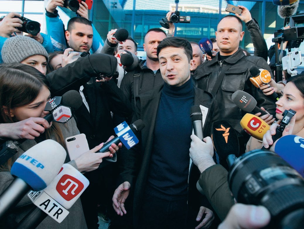 На фоне других сорока претендентов Зеленский оказался самым народным кандидатом. Уже в конце января он вышел в лидеры предвыборных опросов. Матерые политики, среди которых Петр Порошенко и Юлия Тимошенко, вскоре поняли, что перед ними серьезный противник. Под Зеленского начали копать. Его обвиняли в употреблении наркотиков и во владении бизнесом в России, караулили папарацци и подначивали провокаторы, а в интернете опубликовали ролик, где Зеленского якобы сбивает грузовик. Поступали и реальные угрозы.
