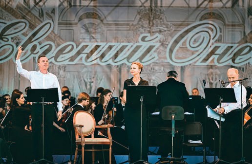 На входе в Тобольский кремль — огромная толпа. Внутри выстроена сцена для Тюменского филармонического оркестра и несколько пюпитров — для Евгения Миронова, Марии Мироновой, Игоря Верника, Елизаветы Боярской, Авангарда Леонтьева, Ольги Остроумовой и Василия Михайлова. Совсем скоро они начнут спектакль-концерт, который сочинила режиссер Марина Брусникина для фонда «Артист». Будут звонить колокола, Онегин вновь вызовет на дуэль Ленского, а Татьяна в финале голосом Лизы Боярской сообщит, что другому отдана, так, что земля на знакомых словах вдруг сделает пару лишних оборотов, а внутри тебя что-то окончательно умрет. Между поэтическими строками будут звучать Чайковский, Свиридов и Прокофьев. Мошки будут кусать, солнце — садиться, а примерно три тысячи тоболяков и гостей — быть с Пушкиным и куда реже, чем можно было предположить, поглядывать в телефоны. Концерт придется на основное время матча Россия — Испания, так что выбор знакомого Пушкина для многих неочевиден. «Может, включите на экранах трансляцию без звука», — полушутя, полусочувствуя предлагали на репетиции Марине Брусникиной журналисты. «Да я сама болею! Но артистов жалко», — вздыхала режиссер. Сборная России тоже пожалела артистов: дополнительное время началось сразу после концертов, и после стоячей овации «Онегину» его зрители сели смотреть футбол. Из-за сцены примчался Игорь Верник, который устроил еще один спектакль своим болением.