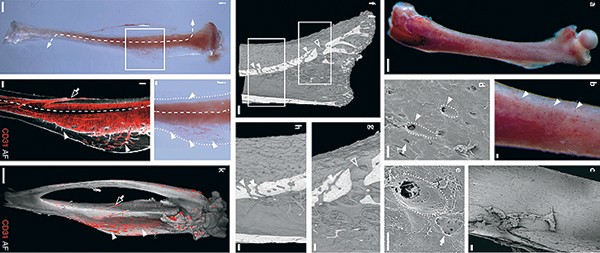 Ученые из немецкого Университета Дуйсбург-Эссена под руководством Матиаса Гюнцера сумели — оказалось, наши кости испещрены кровеносными сосудами, словно крошечными туннелями. Открытие произошло случайно: Гюнцер наблюдал за флуоресцентно окрашенными клетками крови у мышей и заметил, что они проходят прямо через кость. Не найдя объяснений в справочниках, он начал собственное исследование, сделав кости мышей прозрачными, и обнаружил, что множество крошечных сосудов-туннелей проходит через внешний (кортикальный) жесткий слой кости в ее внутренние полости. Эти сосуды, благодаря которым кровь и иммунные клетки, вырабатываемые в костном мозге, могут распространяться по телу, назвали транскортикальными сосудами. Вскоре их обнаружили и у человека. (4)