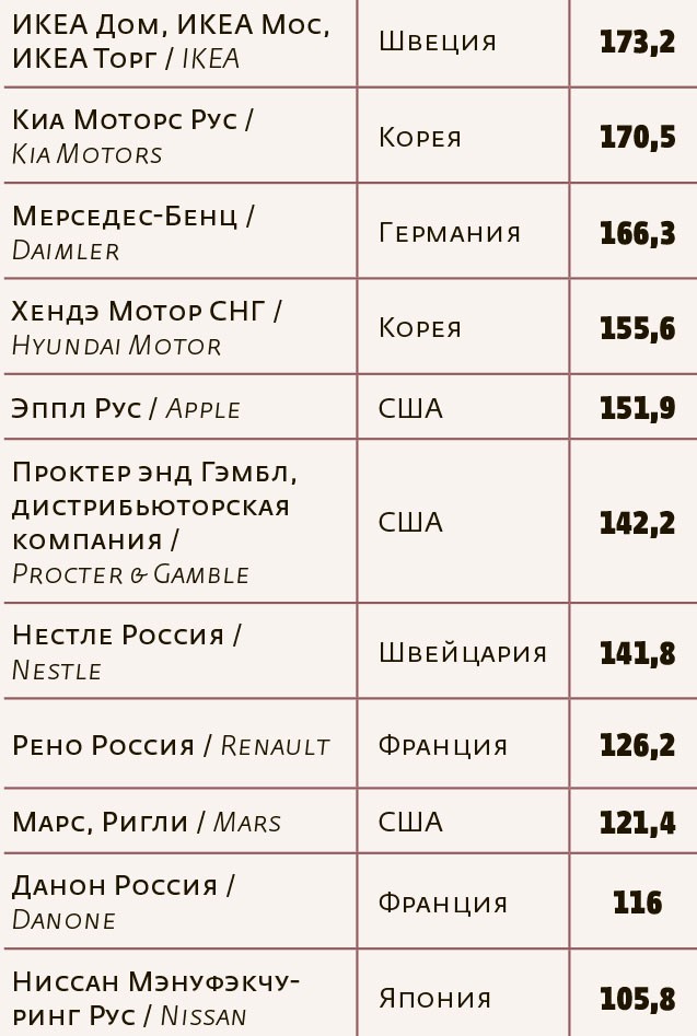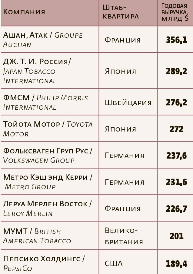 20 крупнейших зарубежных компаний, которые ввозят в Россию капитал и вывозят из нее прибыль