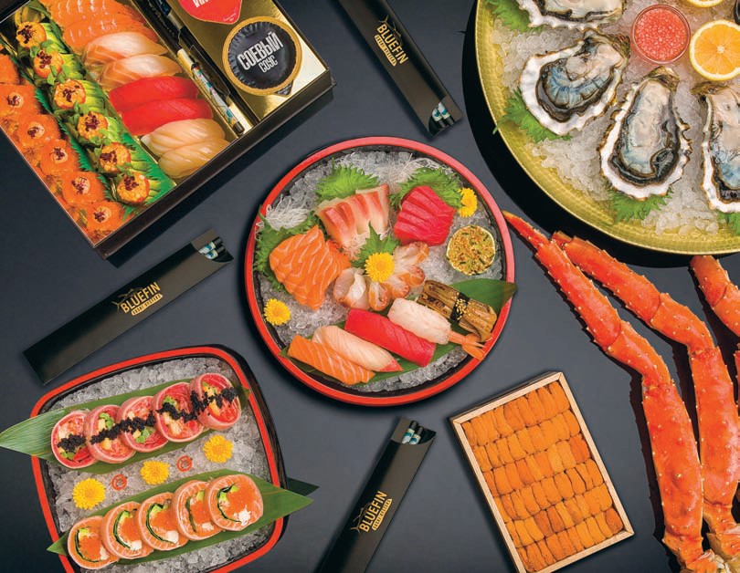 Bluefin появился в декабре 2018 года; бренд позиционируется как премиальный сервис доставки блюд японской кухни, минимальная стоимость заказа — 2000 рублей. В меню представлены пять видов устриц: японские — какиэмон, французские — фин де клер и касабланка, а также императорские и хасанские устрицы с Сахалина. Они сервируются крутонами из бородинского хлеба, поджаренными на углях, лимоном, винным уксусом с луком-шалотом и соусом пондзу.
