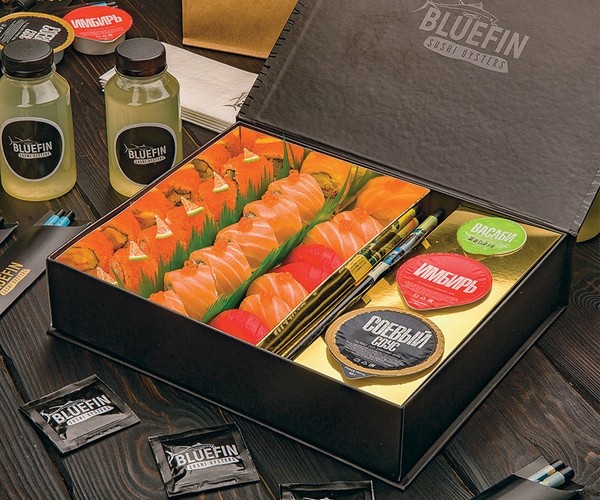 О том, как доставлять блюда по Москве, Bluefin тоже позаботились. Компания разработала упаковку для фирменных сетов. Материалы для упаковки заказывают из Японии. Наборы поставляются в черной коробке из прочного картона с магнитным клапаном. «Эргономичная конструкция обеспечивает безопасную транспортировку — сеты приедут именно в том виде, в каком они представлены на фото, а удобный формат позволяет взять коробку с собой куда угодно, даже в самолет или поезд», — рассказывают в компании. К набору прилагается все необходимое: салфетки, приборы, соусы. Устрицы упакованы в термосумки с емкостями для льда.