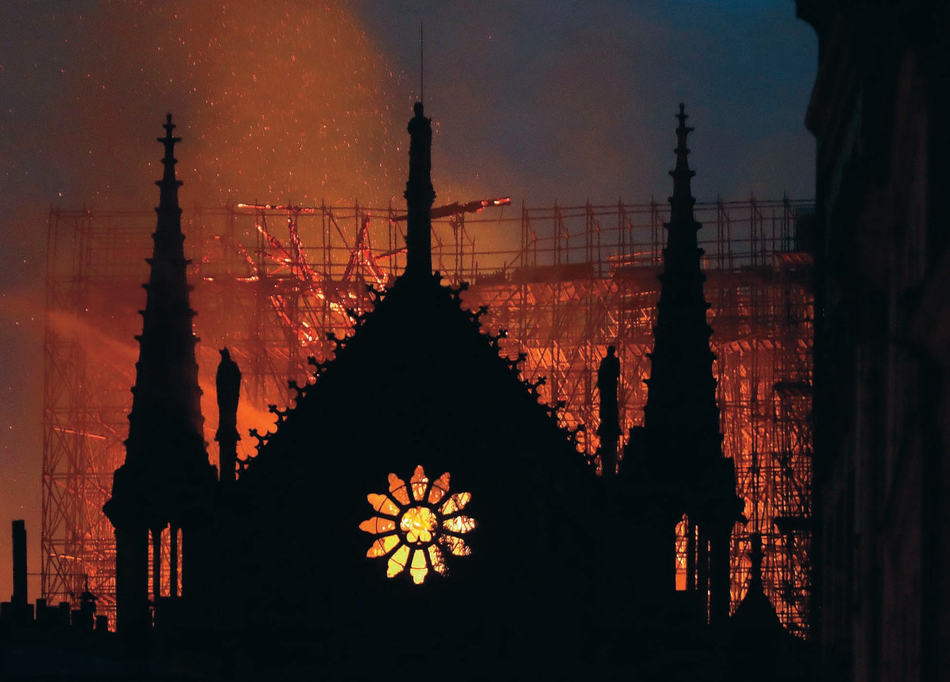 15 апреля войдет в историю Франции как «День слез и молитв». Вечером этого дня загорелся собор Парижской Богоматери — символ Франции. Огонь уничтожил значительную часть одного из самых известных французских памятников архитектуры: готический шпиль и крышу здания. В тушении были задействованы сотни пожарных, они справились со стихией только спустя 15 часов, обошлось без человеческих жертв. Пока шла борьба с пожаром многие очевидцы, парижане и туристы, не могли сдержать слез, кто-то вставал на колени и молился.