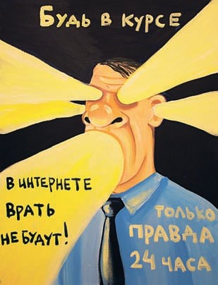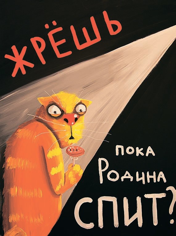 — Да. Вот, произошло какое-то событие, и он раз — нарисовал. Но эта картинка — она же вскоре теряет актуальность, через неделю людям не ясно, про что она. Мне кажется это мелковатым, попсовеньким. Я-то стараюсь нарисовать картинку так, чтобы человек её повесил на стену, каждый день на неё смотрел и всегда её понимал.