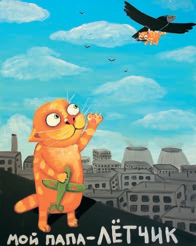 — Непонятно. Вот что здесь нарисовано? Антенна. Кот по проводу идёт, как канатоходец, в руках у него две бутылки пива. А второй кот, покрикивая, его раскачивает. Что это, откуда?