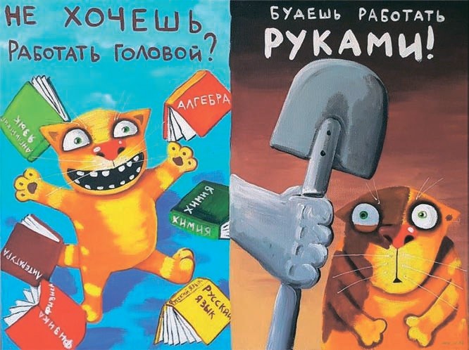 — Да-да. И не надо лезть в это высокое современное искусство. Потому что оно всё построено на тексте, а не на изображении. Какая-то труба, торчащая из стены – это просто труба, торчащая из стены. Но если её сопровождает объяснялка с тучей слов, понятных единицам, тогда это художественное произведение. А моя картина чем привлекает людей? Не надо иметь суперобразования, чтобы она тебе понравилась.
