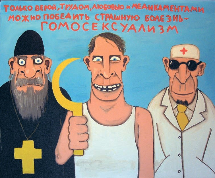 — А что Майдан?! Майдан меня вообще не удивил. Я незадолго до этого приезжал в Киев. Там устраивали выставку «Жлобарт», где висели и мои картины. И общался с этими людьми. Для них это всё было по-настоящему, и да – были жертвы. Но, тем не менее, всё равно мне казалось это какой-то ролевой игрой, с этими палатками, щитами и палками. А картины мои там и остались, я их оттуда забрать не могу.