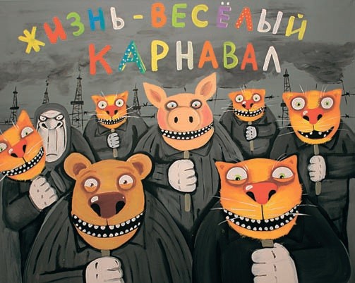 — Да, я создаю некий мир, и он, скорее, метафизический, мультипликационный. Но человек устроен так, что видит и слышит только то, что хочет. Есть у него набор каких-то ценностей, допустим, политических взглядов. Он смотрит на мои картины и думает: «А-а, это же про Крым, точно. А та вон — про Трампа, а рядом — про пенсионную реформу». На самом деле, там нет никаких аллегорий. Но это соответствует его внутренней настройке.