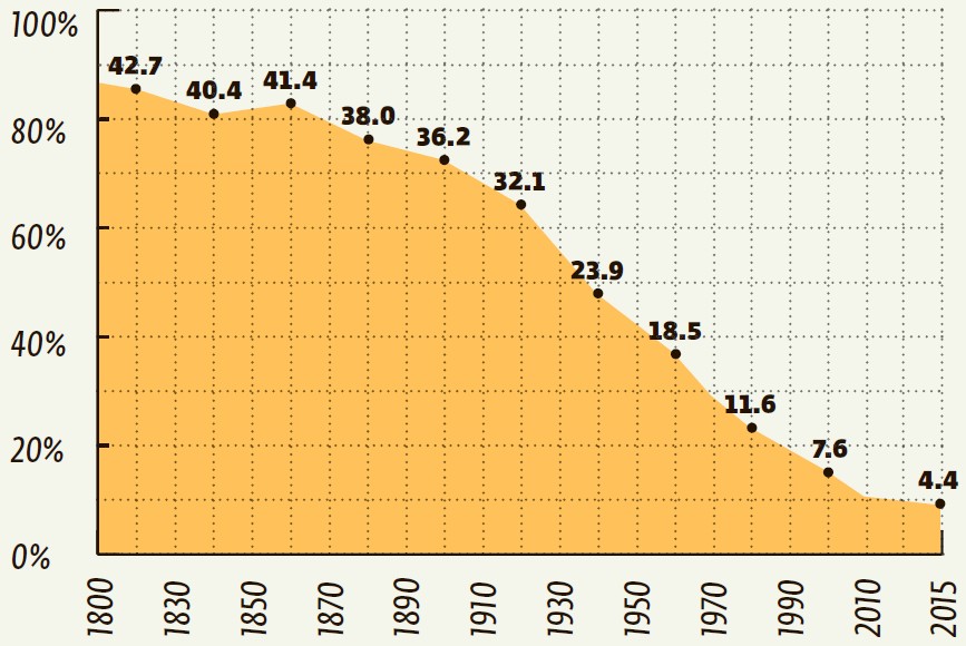 Эти цифры лучше любых слов показывают, как изменился мир, стоит ли верить в прогресс и стала ли жизнь людей лучше за последние двести лет, с тех пор как гудки первых паровозов возвестили о наступлении индустриальной эпохи.