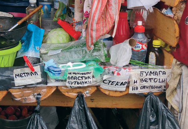 На входе масса агитпропа на тему нопасарана и несгибаемости Шиеса, порой с юмором: «Мусор — раздельно. Люди — вместе».