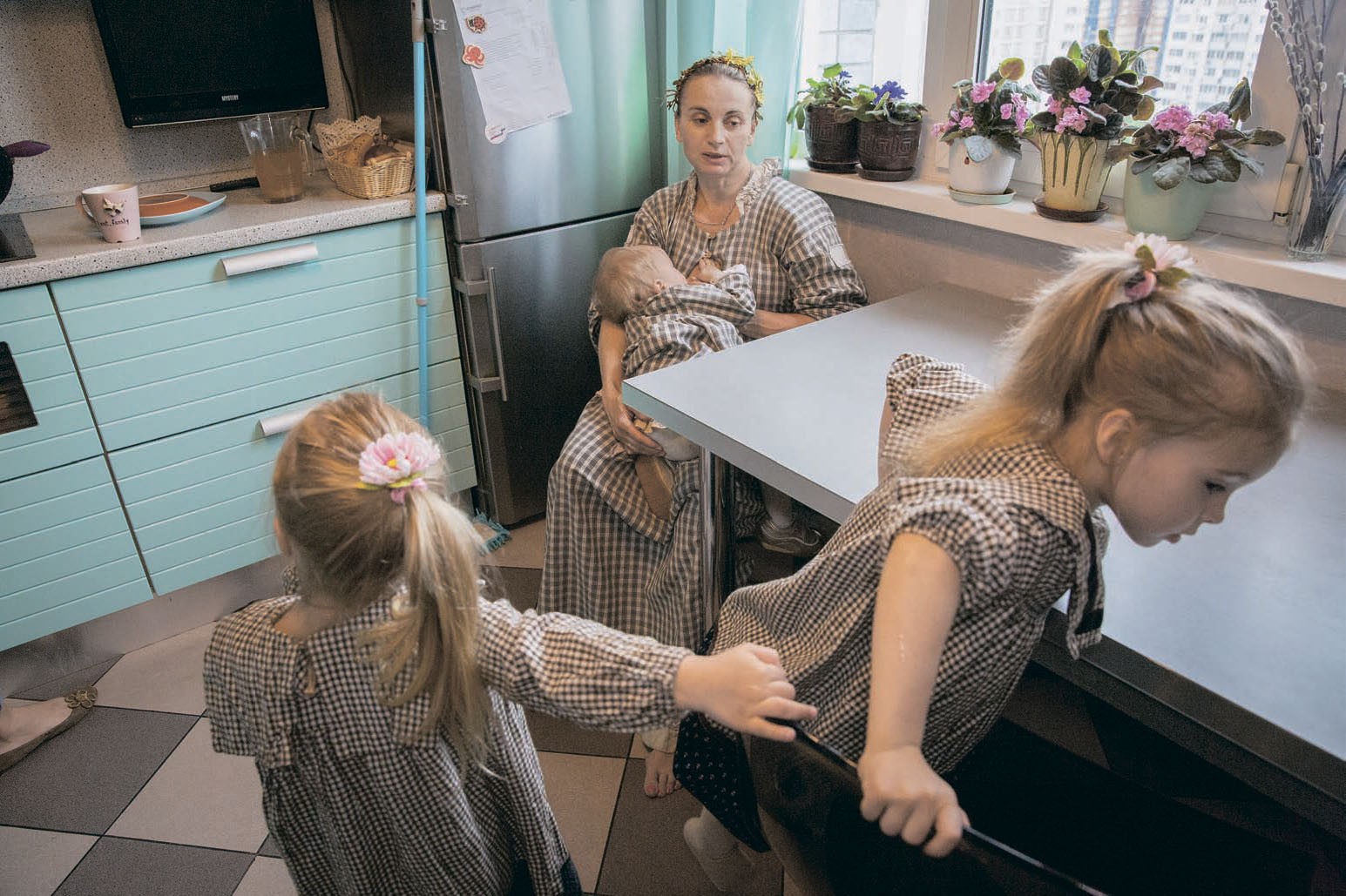 Мария, она же @Serafimafro, — блогер с почти 100-тысячной аудиторией подписчиков в Инстаграме (соцсеть признана в РФ экстремистской и запрещена). Притом что она — «православный блогер», мама семерых детей, и пишет о детях и внуке, семье, вере и ценностях. «РР» публикует фотографии проекта Натальи Поповой о том, как сочетаются и как контрастируют разные миры: земное и небесное, модное и вечное, реальность и Инстаграм (соцсеть признана в РФ экстремистской и запрещена)