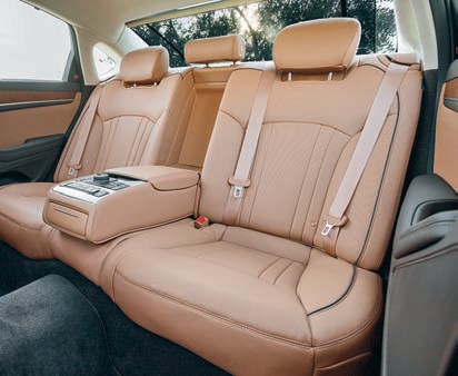 Особенно это понимаешь, находясь в задней части салона: здесь пятиметровый G80 предоставляет, пожалуй, даже больше места, чем BMW 5-й серии или Mercedes-Benz E-класса. Притом пространство можно подстроить под себя: отдельно для каждого пассажира задних сидений возможна регулировка по вылету и наклону спинки; тут же есть пульт управления музыкой и подогревами сидений. Кроме того, находясь сзади, можно подвинуть правое переднее кресло, чтобы расположиться поудобнее. При желании можно воспользоваться шторками (на дверях — механическими, на заднем стекле — с электроприводом). Но особенно производит впечатление тишина: на окнах сзади установлен двойной стеклопакет.