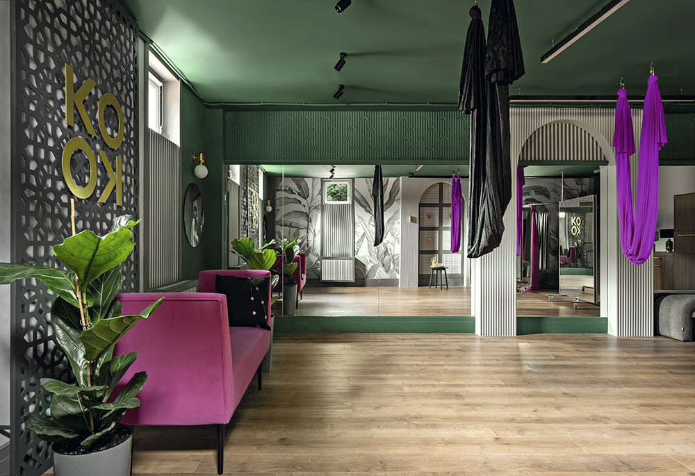 Команда «Бюро необычных интерьеров» EVA.BURO под руководством основательницы Евы Зеленской трансформировала пространство лаундж-студии KOKO loft в выразительную и многофункциональную площадку для занятий танцами и йогой