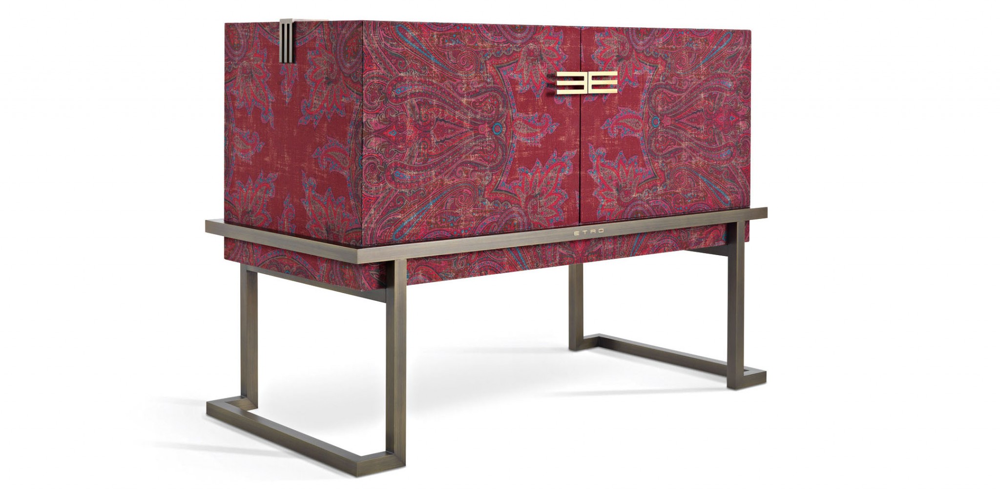 Новинка 2018 года — экзотичный шкаф Kolkata от Etro Home Interiors. Он назван в честь индийского города Калькутта, бывшего торговым центром Ост–Индской компании. Прообразом ему послужили старинные сундуки, в которых перевозили колониальные товары. Новинка может быть украшена бронзовым или латунным основанием, корпус покрыт антикварной печатной тканью с культовым мотивом Maison, декоративные ручки представляют собой фирменный логотип бренда.
