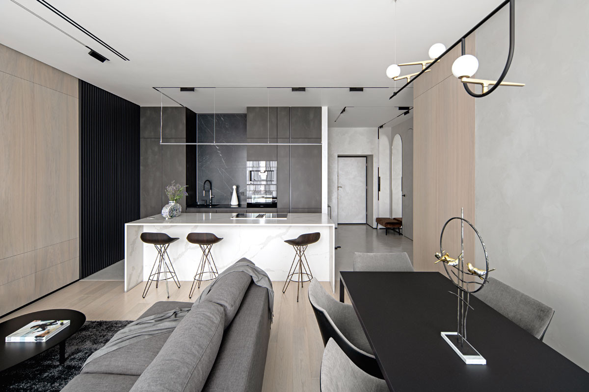 Интерьер этой московской квартиры — логичное продолжение фирменного стиля бюро ARCHSLON, отличающегося архитектурным подходом к проектированию и концептуальным дизайном