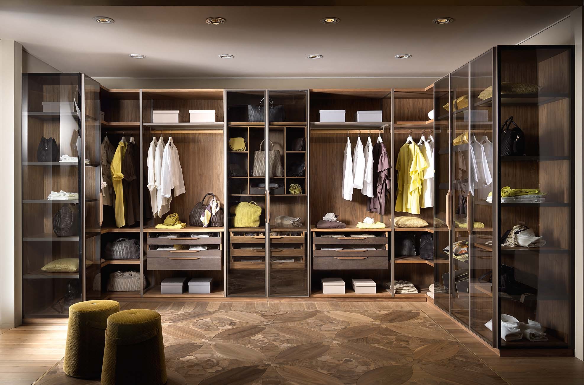 Создать в доме персональный филиал миланского бутика предлагает фабрика Pianca. Её дизайнеры придумали модель Milano со стеклянными дверями и универсальным наполнением, которое позволяет элегантно развесить и разложить одежду и аксессуары. Впрочем, есть возможность дополнить шкаф непрозрачными или зеркальными дверцами. www.pianca.com