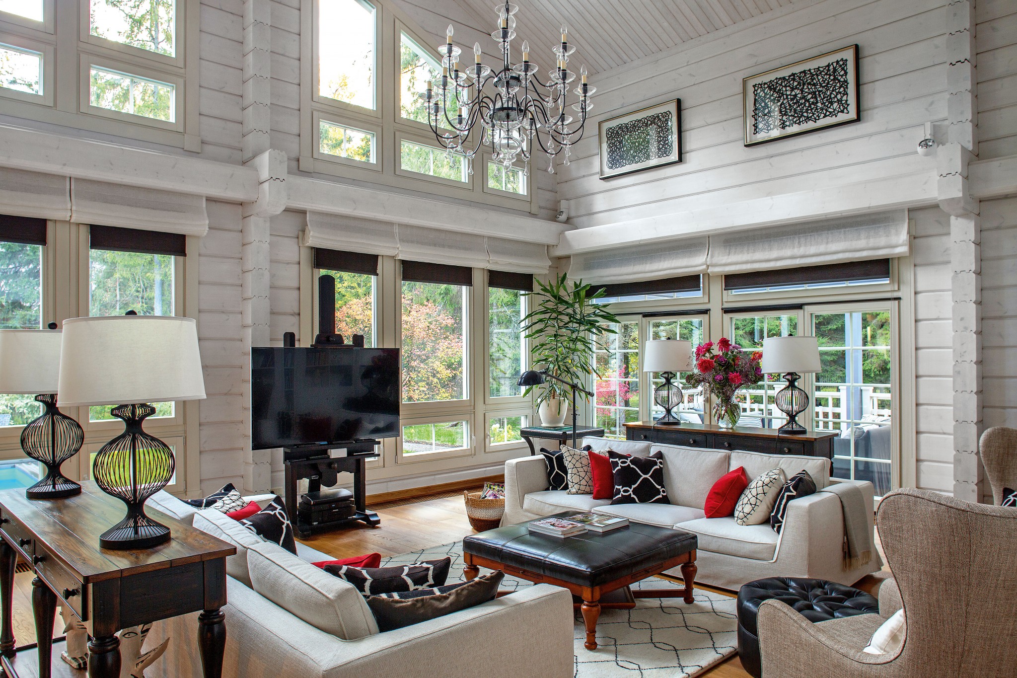 Гуля Ахметшина: «Интерьер деревянного дома решать не так просто, как кажется. Загородный дом всегда пытается «тянуться» к идеалу виллы, особняка, замка… Тогда как у деревянного дома — деревенское происхождение, хотим мы этого или не хотим. Особенно в России это так. Изба, терем, дача… Вот история и география деревянного дома. Но дача — это не дом для постоянного проживания, это всего лишь summer house, сезонная тема. И у дачи свои жанровые законы. Нам надо было создать именно дачу — хозяйка приезжает сюда только на выходные»