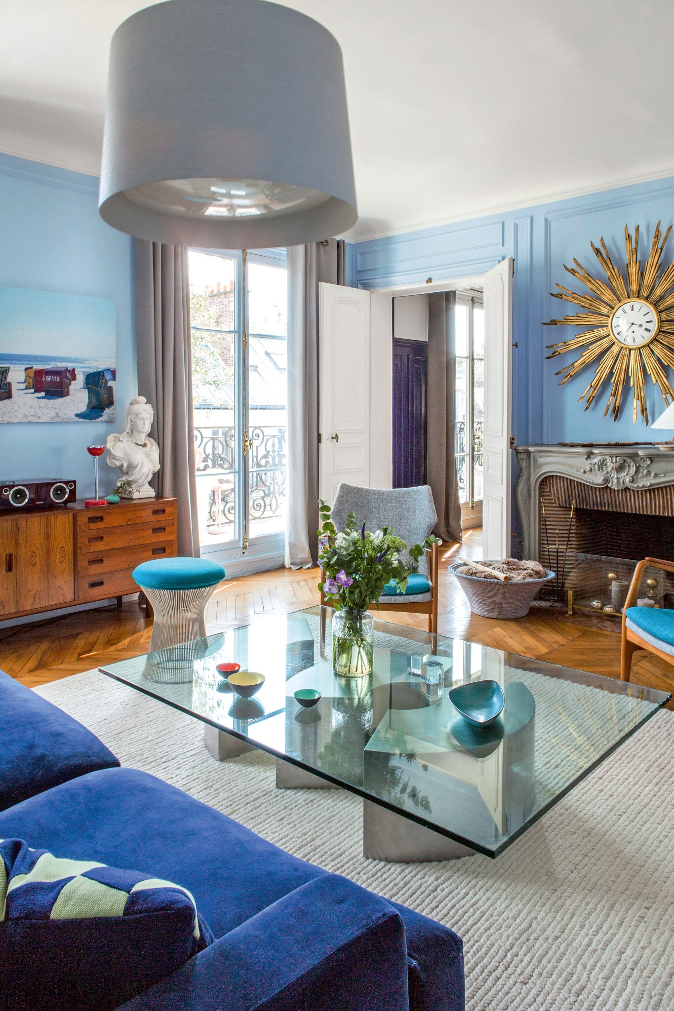 Парижанка Юлия Рузо давно увлечена декором интерьера. Из хобби, которым она занималась, пока дети были совсем маленькими, это превратилось в полноценную профессию. Юлия не только оформляет интерьеры, но и ведёт популярный во Франции блог, посвящённый дизайну. Как это часто бывает, свою квартиру дизайнер нашла не сразу. Они с мужем начали поиски ещё в 2015-м, смотрели и этот объект. Но в ряду прочих он потерялся, и пара его упустила. Поиски не увенчались успехом, и они, почти в отчаянии, взялись пересматривать квартиры по второму разу. (Рузо хотели жить именно на Монмартре, а это сильно сужало круг поисков.) «Интерьер портили унылые стены, — рассказывает Юлия. — Он казался пожухлым. Но, присмотревшись, мы поняли, что у него большой потенциал, который мы можем легко реализовать». Собственно, дизайнеру не понадобилось даже что-то принципиально менять в планировке — активную молодую семью с двумя