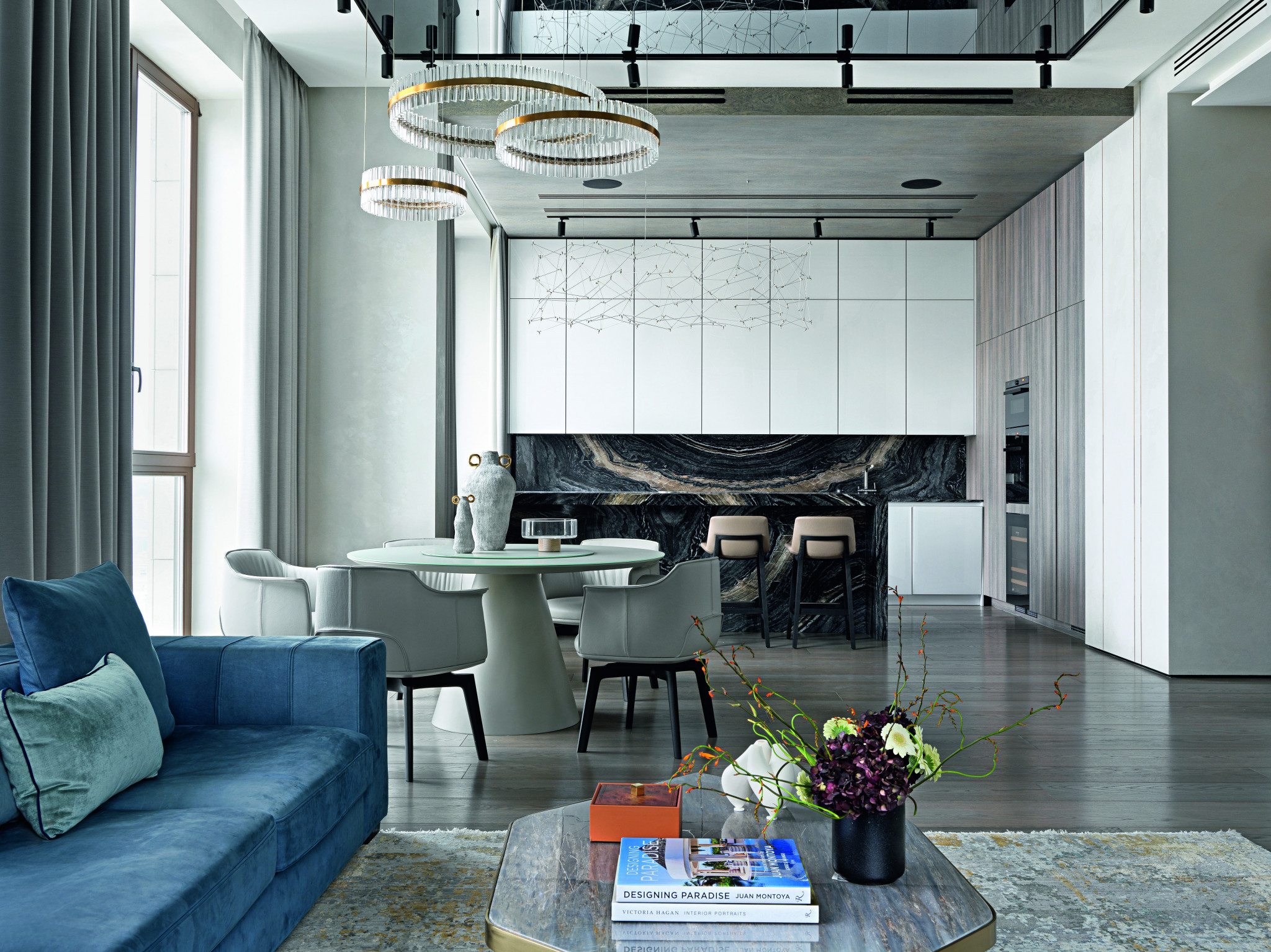 Заказчик Валерий Ничушкин — профессиональный хоккеист, играет в хоккейном клубе «Колорадо Эвеланш» в Денвере, у его жены Светланы свой бренд пляжной одежды Lavarice. Они любят современный стиль, но с небанальным подходом и не чистый, холодный минимализм, а всё же предпочитают ощущение дома, комфортного жилого пространства.